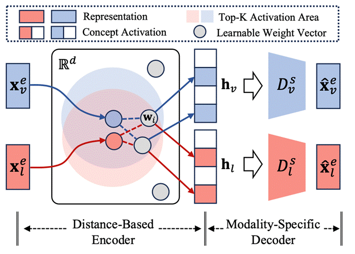 针对当前视觉语言大模型中多模态表征对齐机制缺乏解释方法的问题。本文提出基于视觉语言表征的稀疏自编码器VL-SAE,以自监督训练的方式将视觉-语言多模态表征解耦到统一的概念空间中,通过观察两者在概念空间中的对齐情况来理解多模态表征的对齐机制。具体而言,针对现有稀疏自编码器缺乏处理多分布数据输入的缺点,本文对其在结构上进行了改进,通过设计基于余弦距离的编码器与模态特定解码器来赋予稀疏自编码器以自监督形式将视觉-语言表征解耦到统一空间的能力。训练好的VL-SAE可用于解释和增强视觉语言大模型的模态对齐机制。首先,可以将模型推理过程中的表征映射到概念空间,观察模型对于视觉和语言输入的语义理解,并解释两者的对齐机理。其次,可以利用VL-SAE将原表征映射为概念表征,通过在概念空间中进行表征编辑的方式来增强模型对齐。实验证明,本文所提方法可以有效的将现有视觉语言模型(如CLIP,LLaVA)对应表征解耦到相同的概念空间进行解释,同时也可以通过概念空间对齐的方式来提升模型在下游任务上的性能,包括CLIP在零样本图像识别上的性能以及LLaVA在模型幻觉消除任务上的性能。