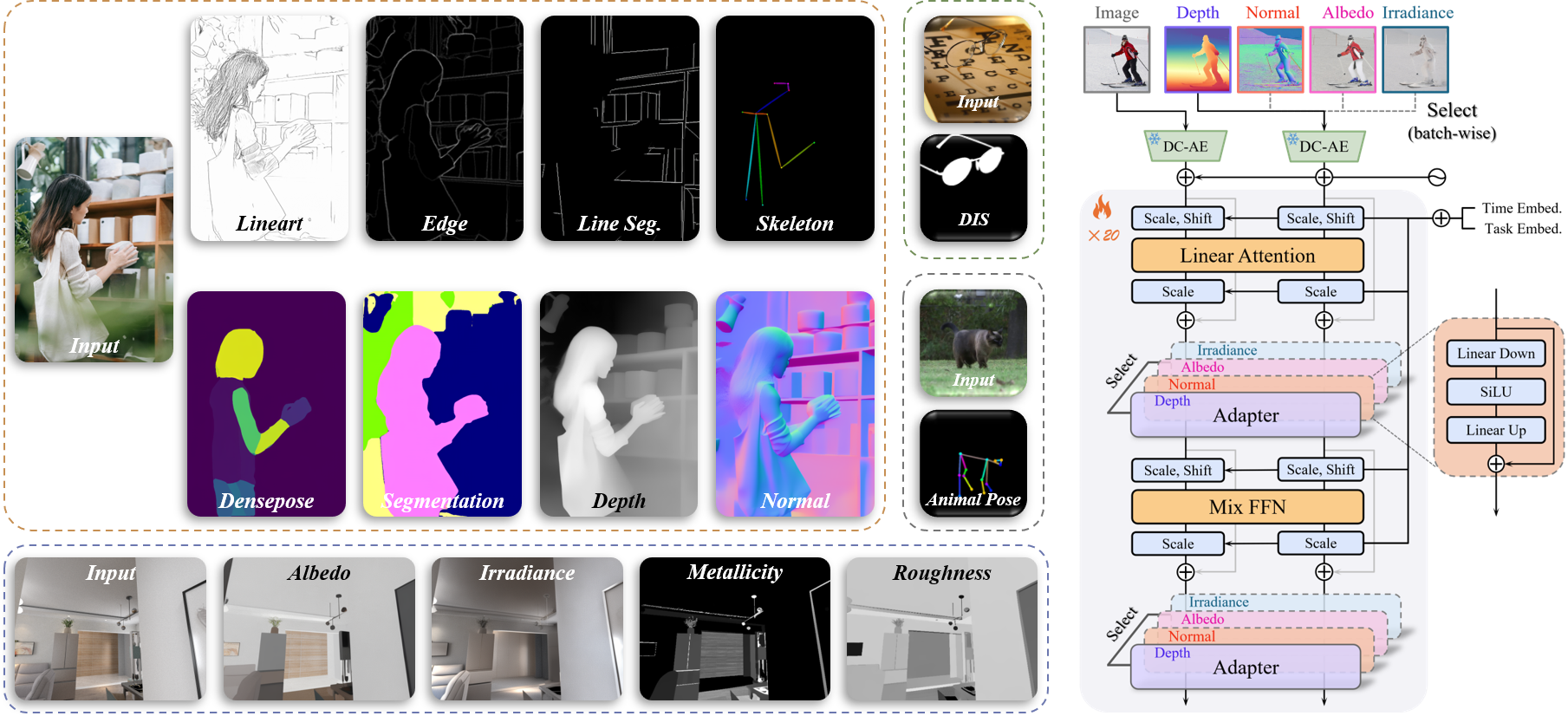 扩散模型在生成任务中展现出了令人瞩目的性能,证明了其捕捉详细结构与语义信息的能力。近期,这些能力已被拓展至视觉理解领域,诸多研究将扩散模型作为各类感知任务的核心骨干。然而,现有基于扩散的感知模型通常局限于单一任务或一组固定的预定义任务,缺乏向新任务高效泛化的机制。为克服这一局限,我们提出了一个基于 DiT 的统一感知框架,命名为UniPercept,它引入了一种全新的 “基础模型 - 适配器” 范式,用于通用视觉感知。在该框架中,一个共享的基于扩散的基础模型经过训练,能够在多样的感知任务中捕捉通用且可泛化的视觉知识,同时为每个独立任务集成了任务专属的适配器。凭借其出色的泛化能力,该基础模型可通过轻量级适配器高效适配至新领域,仅需少至 1000 个训练样本,且可训练参数占比不足 1%。此外,UniPercept 在各类感知任务中均表现出强劲性能,在大多数场景下超越了当前最先进的通用模型,且精度可与专有模型相媲美。