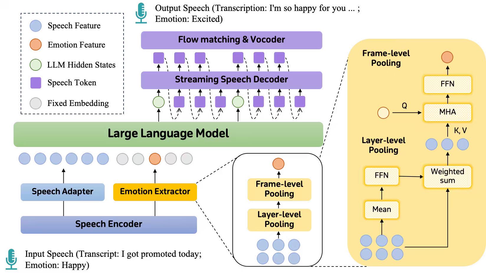共情能力对于口语对话系统至关重要,它使机器能够识别人类语音的情感语调并做出富有同理心的回应。近年来,基于大语言模型(LLM)开发共情口语对话系统的研究取得了显著进展。然而,在训练此类模型时,仍然存在诸多挑战,其中最显著的挑战在于对人工构造的共情语音指令数据的依赖。构造这类数据需要复杂且精细的流程,成本较高且难以大规模扩展。使用跨模态的共情语音指令数据对大模型进行微调也可能会导致灾难性遗忘,削弱其通用能力。除此之外,现有的共情语音大模型也存在隐式共情能力较差,生成的语音缺乏情感表现力等问题。针对这些问题,我们提出了FreezeEmpath,一个端到端的共情语音大模型。FreezeEmpath的训练过程依赖于LLM的内生共情能力,只需要使用现有的中性语音指令和SER数据,不需要精心构造的共情语音指令数据,并保持基座LLM的参数冻结。实验结果表明,FreezeEmpath能够生成富有情感表现力的语音,并在共情对话、语音情绪识别和口语问答任务中取得了优秀的表现,证明了我们训练策略的高效性。
